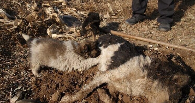 12月13日上午,燕赵都市报记者来到藁城增村镇西姚村,和平东路是西姚村中心的一条大路,走在大路上可以听到村民院子里此起披伏的狗吠声,偶尔也能看到小狗在街上跑过,在一家商店门口,围着一群村民在观看下象棋,路上行人打着招呼匆匆而过。当村民知道燕赵都市报记者身份后,便一下子涌了上来,给记者讲述自己家丢狗的遭遇,不一会儿路过的村民也停下来,讲述自己的所见所闻。村民李金燕家就守着和平东路,李金燕告诉燕赵都市报记者,这已经是近几年来自己家丢的第五条狗了。李金燕说,家里原本有3条狗,1条大的,2条小的,12月2日,大狗无故失踪了。“我们家的狗,平时就在大街上溜达,当天怎么也找不见了,后来一打听,村里丢了好几条狗。这才知道是被偷走了。”据村民张俊和不完全统计,12月2日当天,村里就丢了七八条狗。燕赵都市报记者注意到,在村里的各个路口都装有监控,但是一位村民告诉记者,监控没有通电,只是摆设。图为村民展示被射杀的狗。
