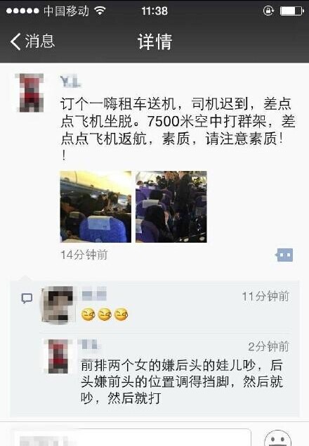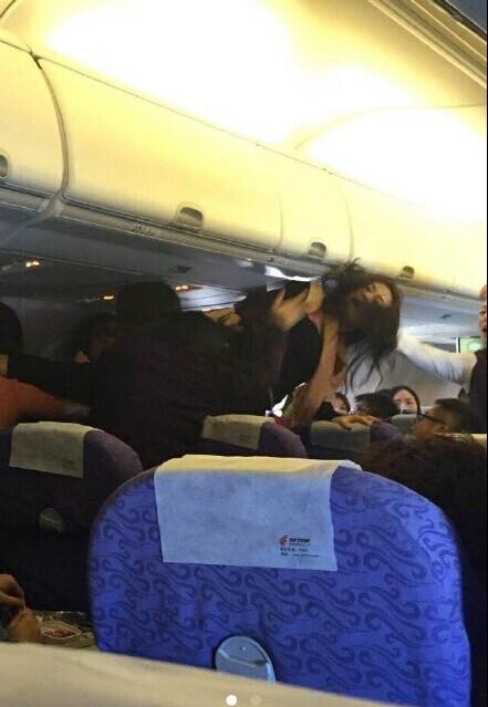 17日上午9点,由重庆起飞前往香港的国航CA433航班上,飞行途中机上乘客发生争执。原因是前排两名女乘客嫌后排小孩太吵,后排乘客责怪前排座椅影响了他们。几名乘客因此在飞机上大打出手,飞机差点因此返航。抵达香港后,香港警方立即介入处理。