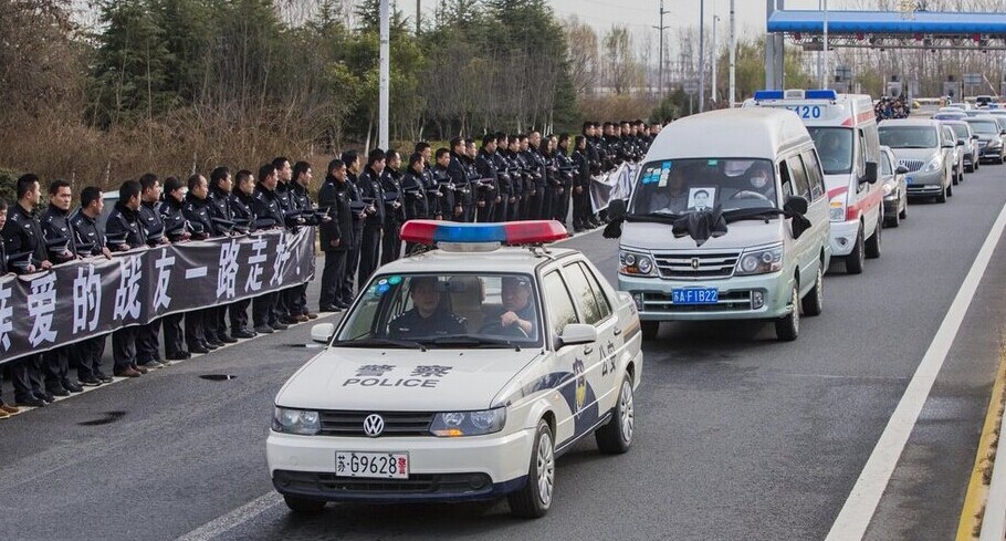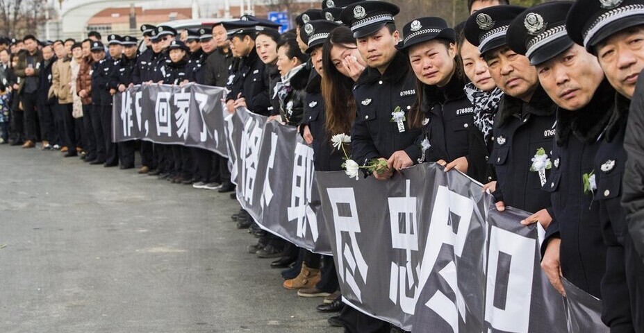 民警在外因公去世--上千民众与同事送行